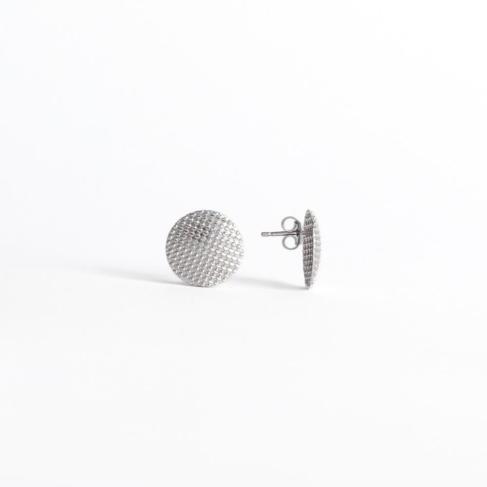 Sofisticati e moderni, questi piccoli orecchini a forma di bottone piatto sono un’elegante fusione di design e raffinatezza. La superficie è impreziosita da una texture diamantata a rilievo che cattura la luce in ogni angolazione, donando un effetto luminoso e dinamico.